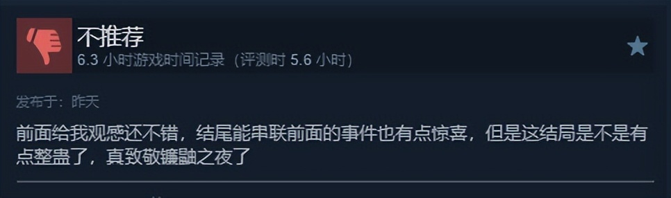因为,这游戏更偏向于一本视觉化的怪谈小说,而非暴风雪山庄……还是偏冷门的那种。发售一周过去,游戏评价也只有100出头。