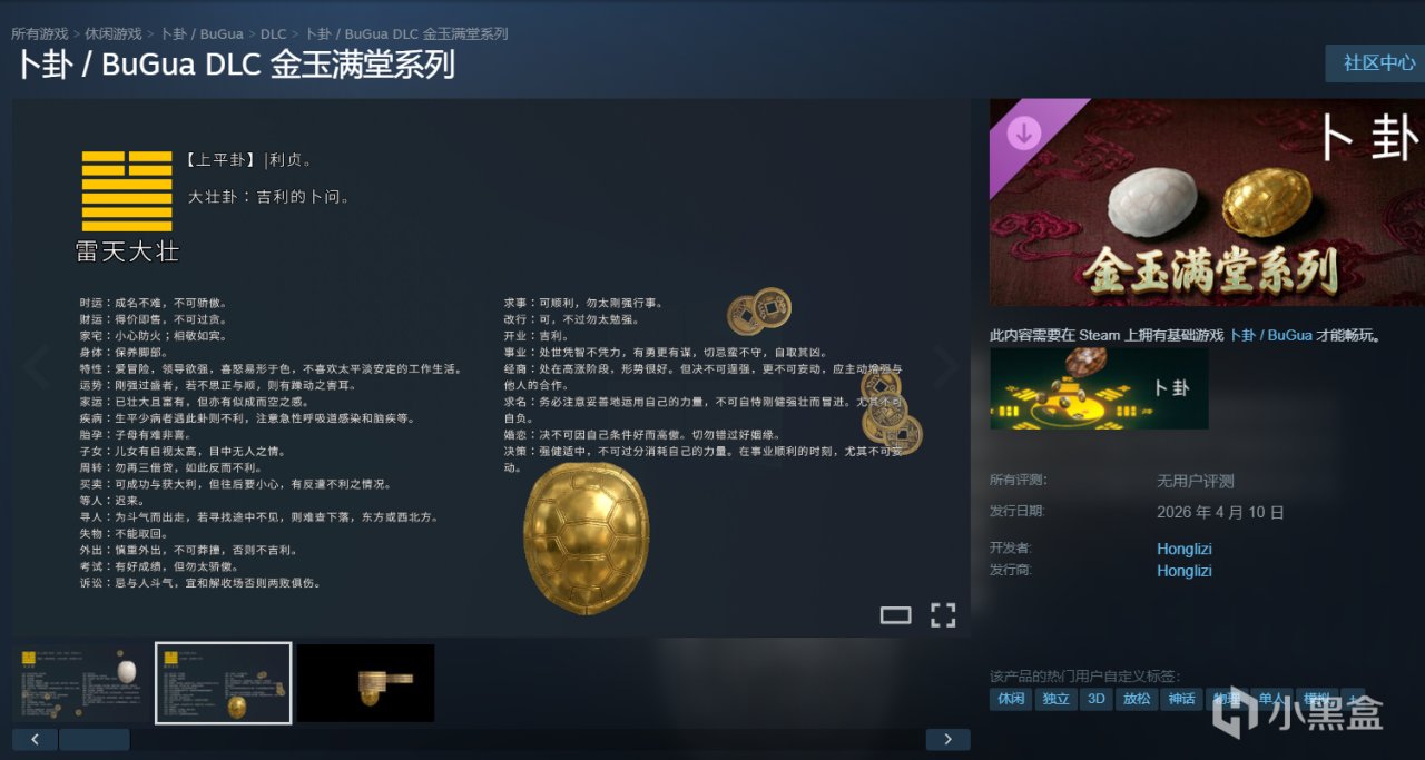 前段時間在小黑盒火了的【賽博卜卦】在盒友們的建議下,我們也做出了2款DLC皮膚“金玉滿堂系列”,該DLC中包含兩款皮膚。