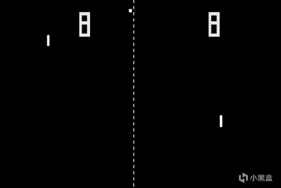 Pong,1972年雅达利发行,画面非常简单,乒乓球玩法,左右横线表示球拍,中间的点表示乒乓球。