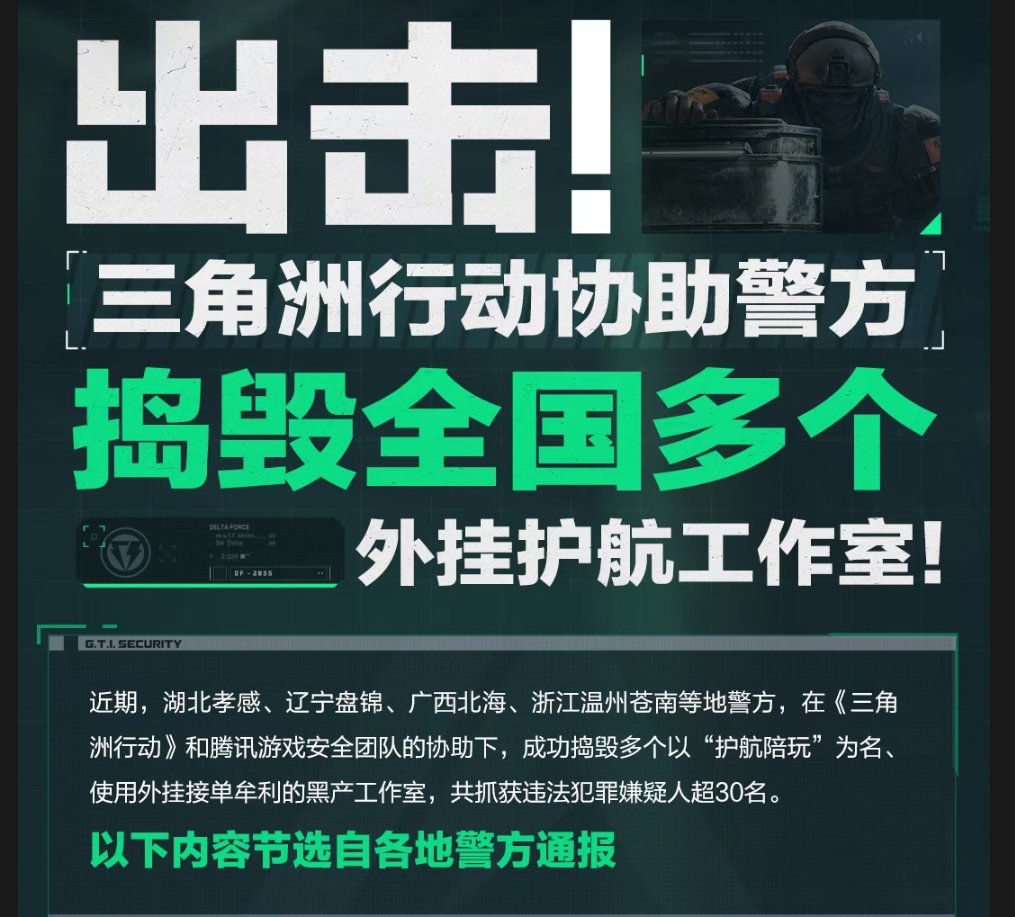這次的公告內容涉及全國多地的外掛護航工作室,可見三角洲一個遊戲所帶來的合法或不合法的經濟效益有多大!