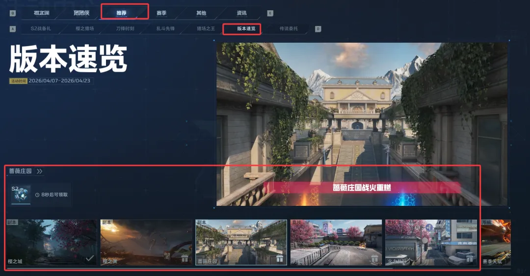 S2进入后,先来到这个【推荐】-【版本速览】,然后每个视频看10秒都可以领取一个箱子。