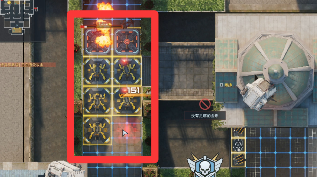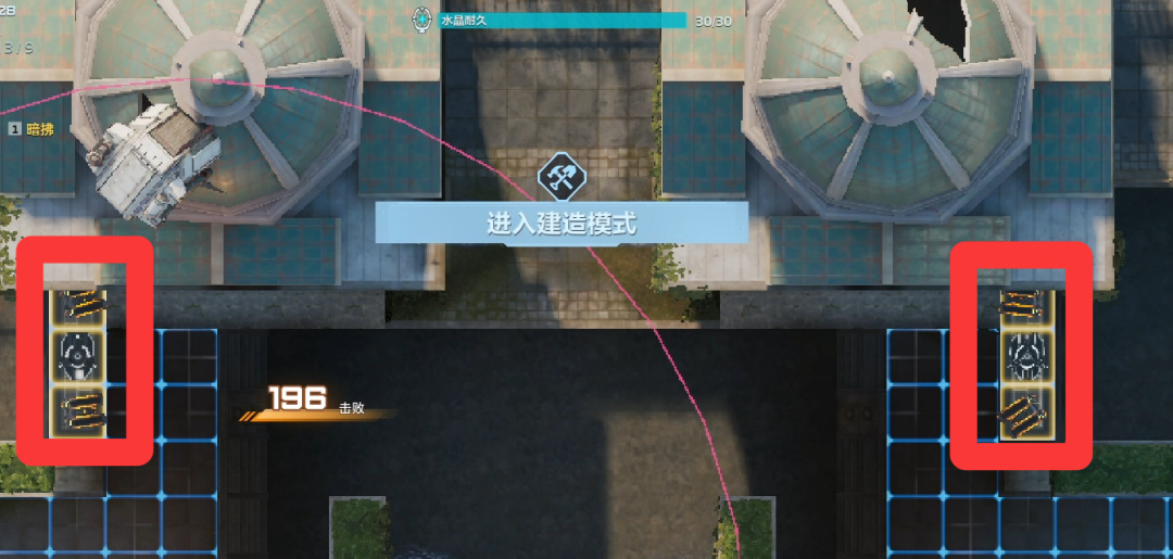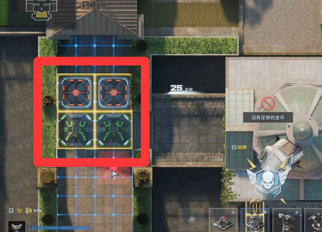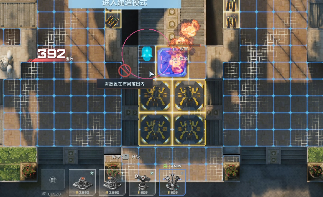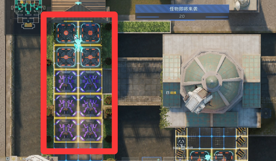 卖掉所有陷阱(直接往上拖就行),左右侧开始堵门。陷阱换成自修、歼灭者、防空、维修。