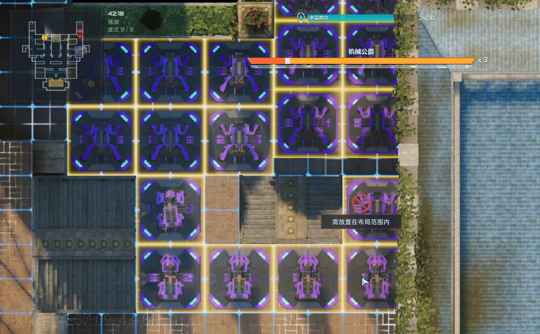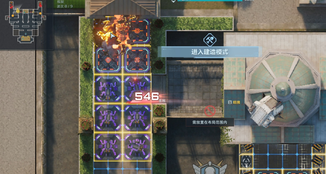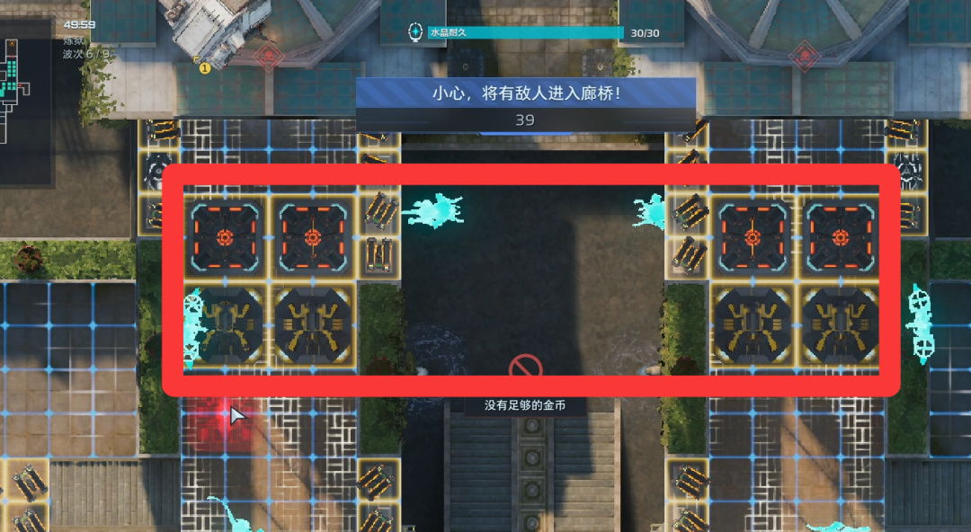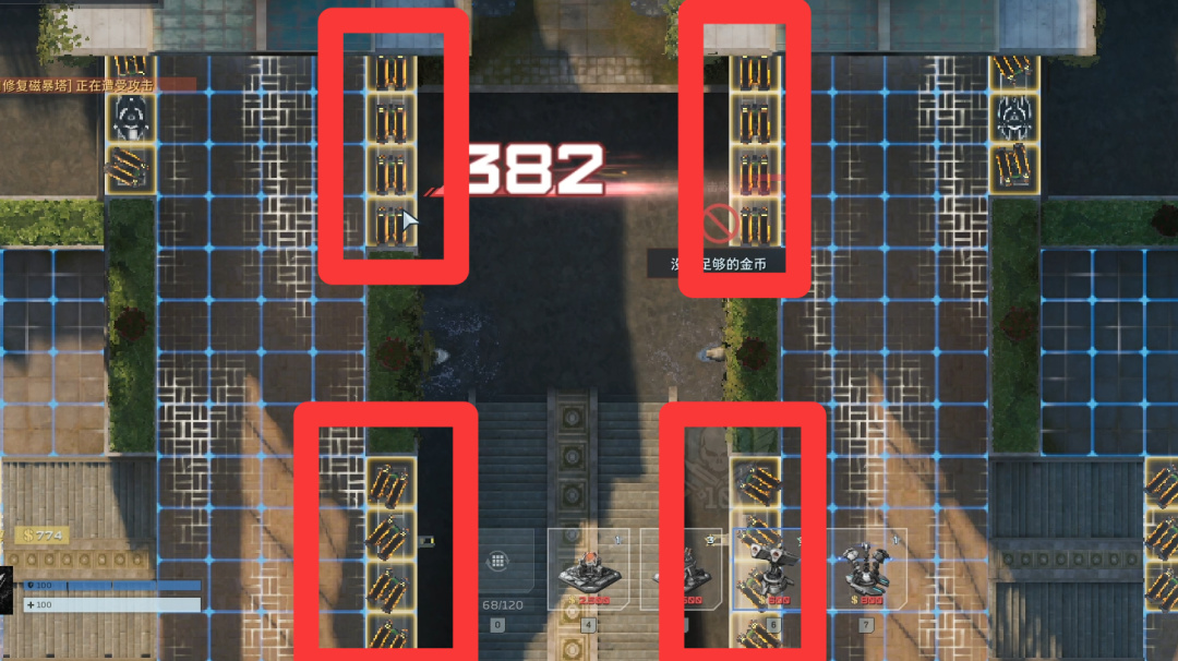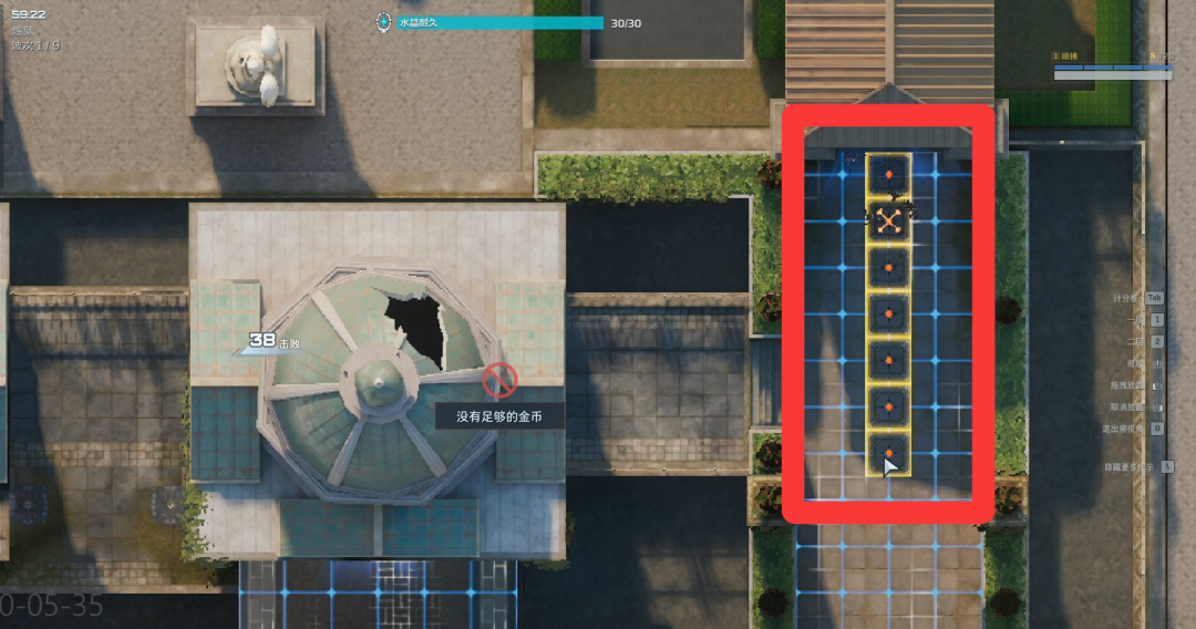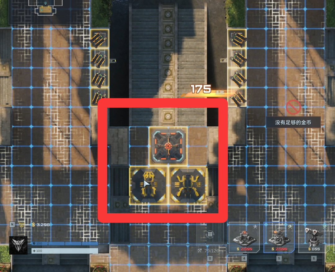 卖掉所有陷阱(直接往上拖就行),左右侧开始堵门。陷阱换成自修、歼灭者、防空、维修。
