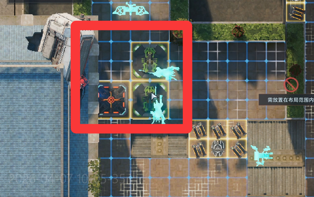左右摆成这个样子,最后放一个自修,中间激光剑变成超大九宫格。毕竟波江会因为自修而停下来远程攻击,所以需要激光剑戳死它。
