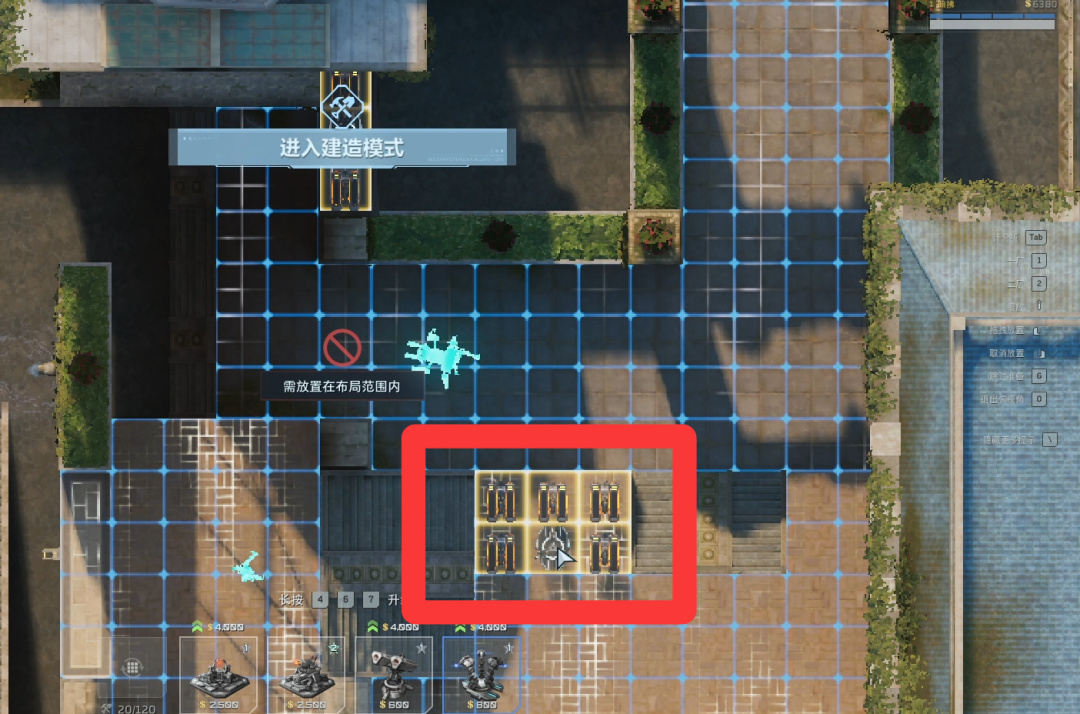 按G跳过等钱来,之后在楼梯这里放上1个自修,两个歼灭者。