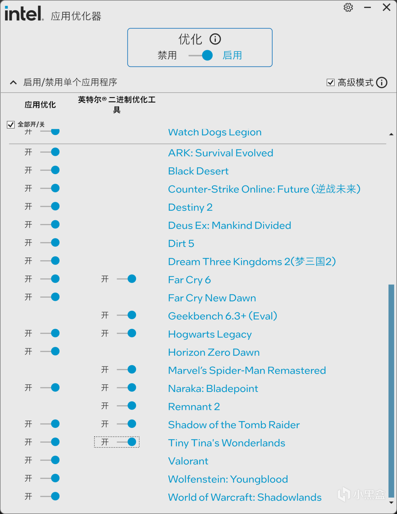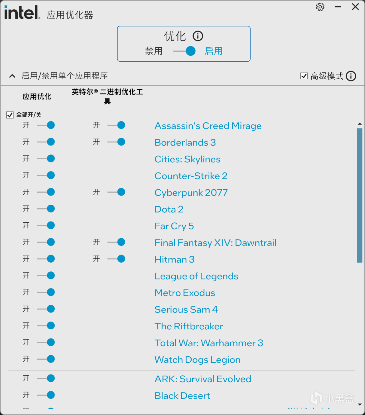 首先來看看Intel的APO應用優化器的優化白名單,需要注意的是270K和250K名單是不一樣的,270K更多,便宜的250K名單也閹割了……