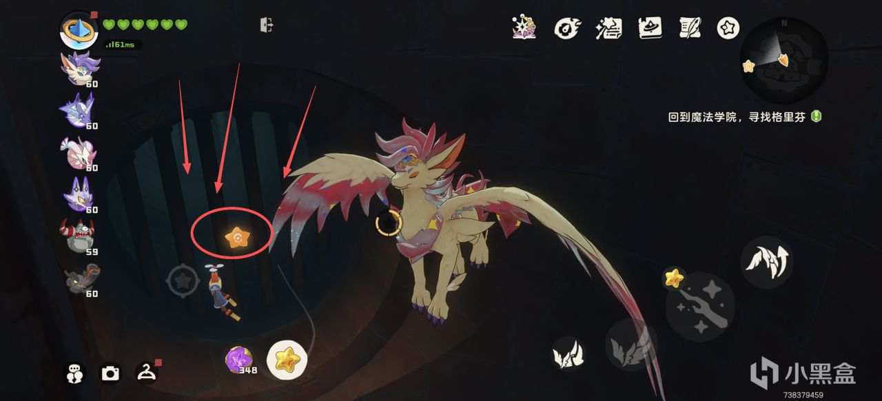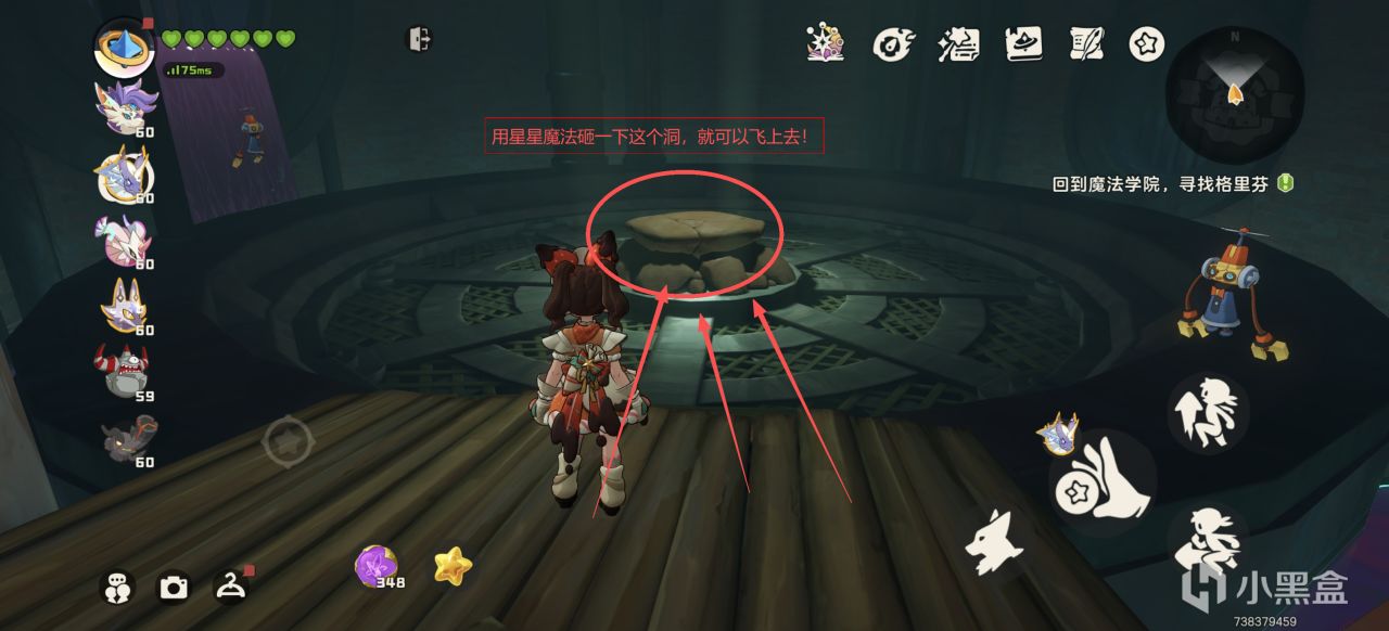 进入副本以后,这个副本很简单,我们只需要用星星魔法去砸一下底下的风洞,就可以一直往顶上去!