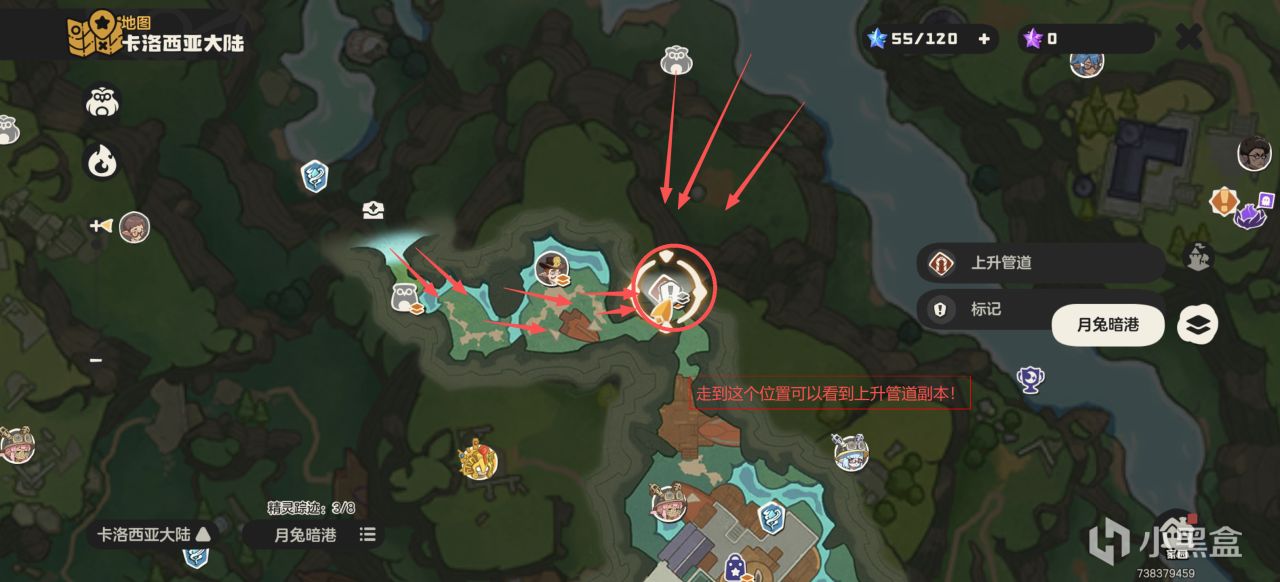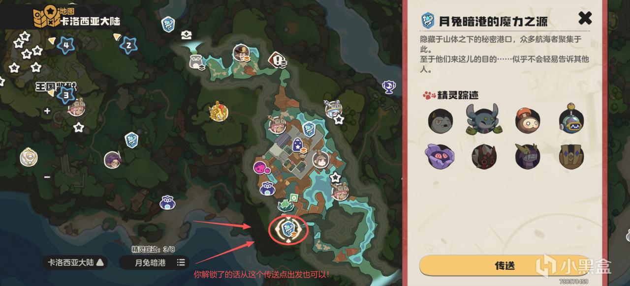 注:你要从另外一边进去的话也可以,或者你已经解锁了地下的传送点,直接从月兔暗港的魔力之源出发,也OK!