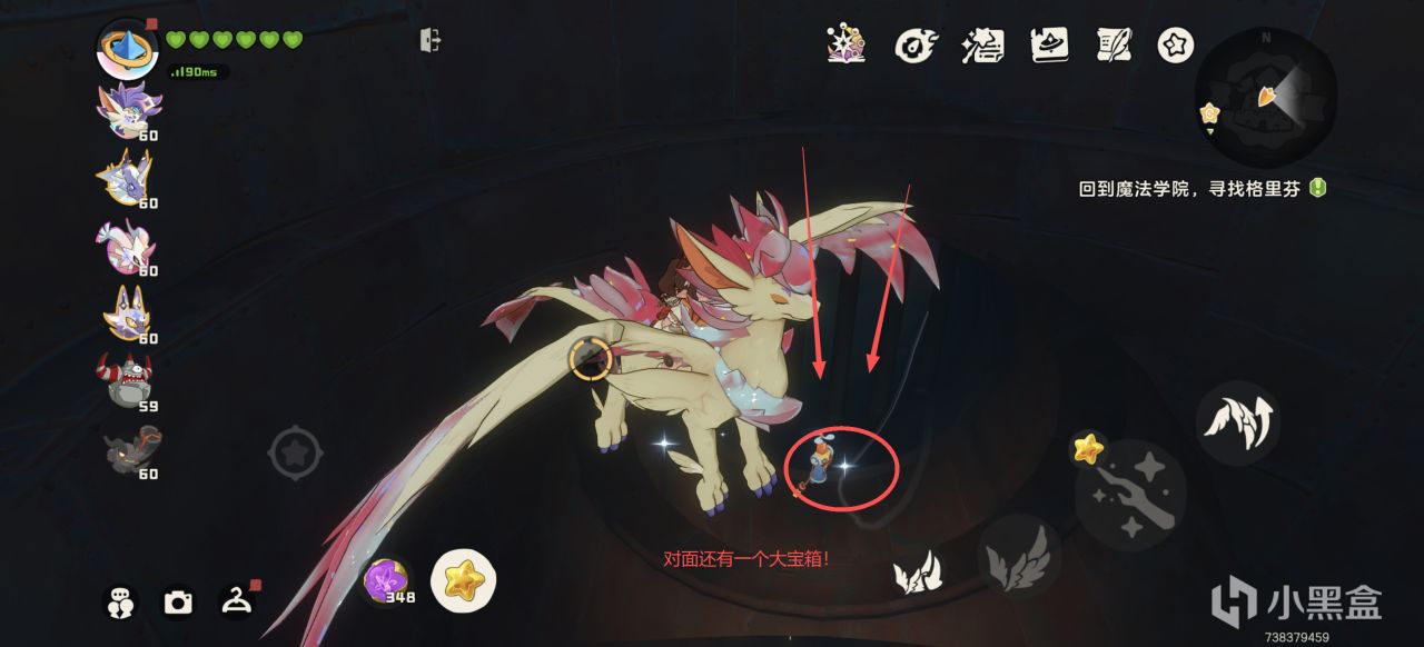 飞上去的过程中会有很多游戏币可以获取,然后中间的左右两侧,一侧是眠枭之星,一边是一个宝箱,大家都可以拿一下!