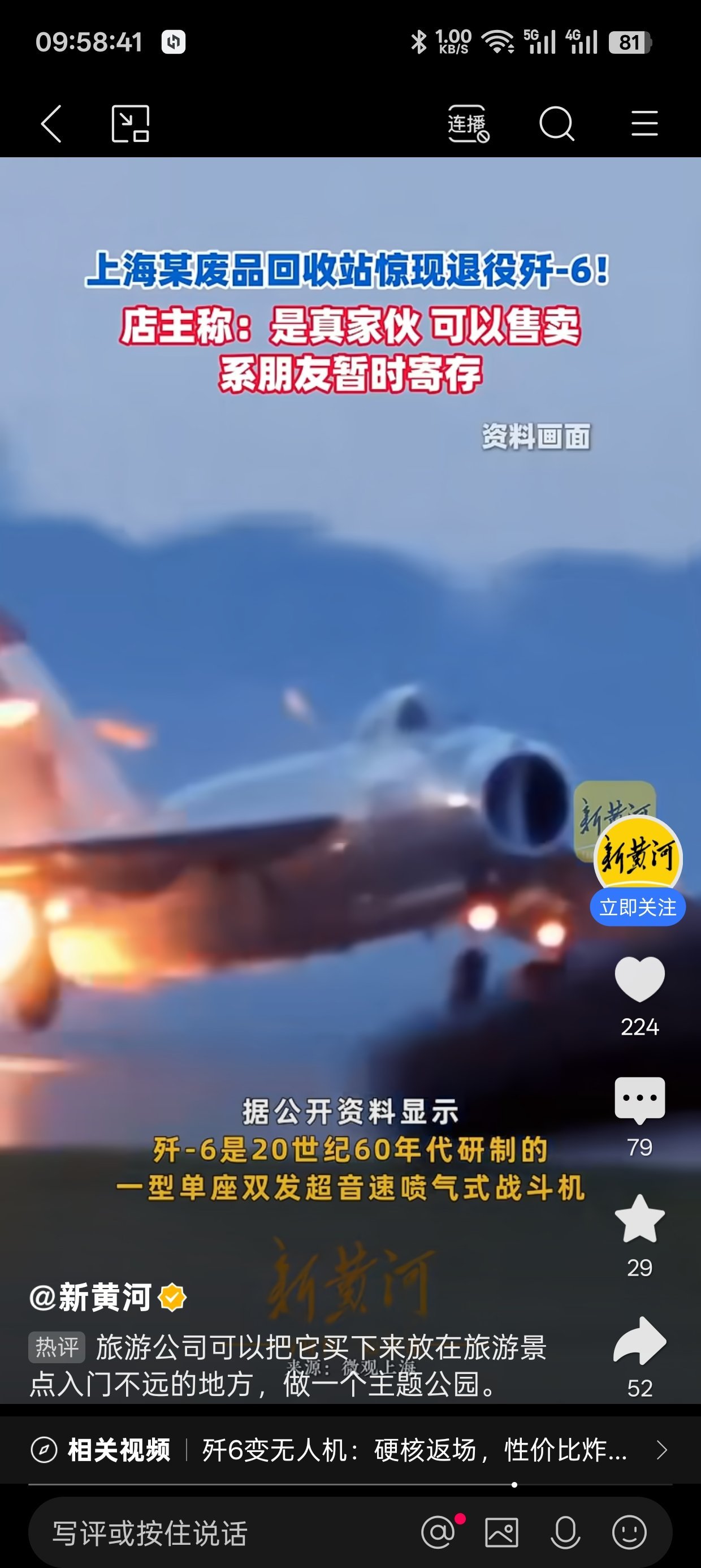 殲-6戰機曾是我國空軍的主力機型,守護了祖國領空數十年,是一代國人的“空中圖騰”,退役後多作爲國防教育展品、愛國主義教育素材存在。此次出現在廢品回收站,也讓不少網友直呼“心疼”,呼籲其應被妥善保護,用於國防教育而非流入市場。