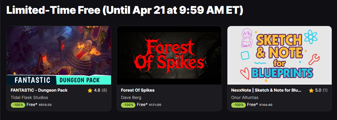 限时免费白嫖EPIC 三款价值不菲的【游戏开发】资源,将于北京时间04.21,21:59(美东时间04.21,9:59)到期!
