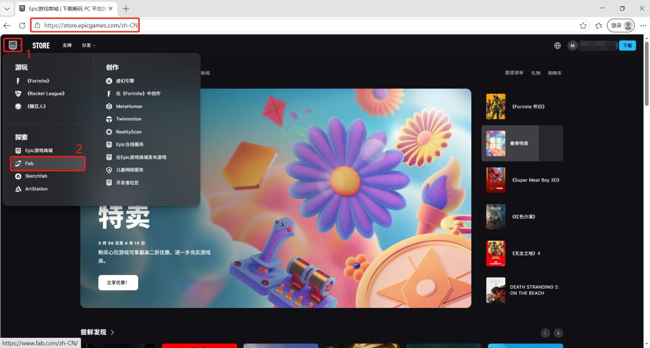 2.EPIC官网跳转 或 浏览器直接输入Fab官网地址