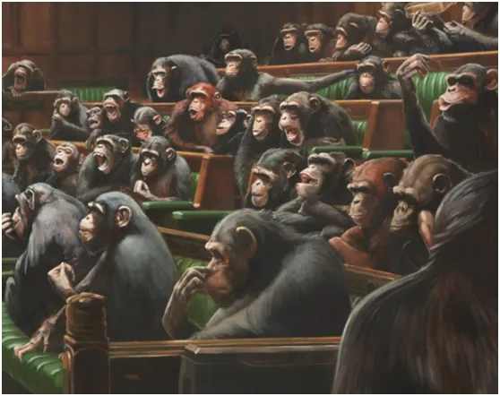 (《英国下议院里满是黑猩猩》/ 局部)