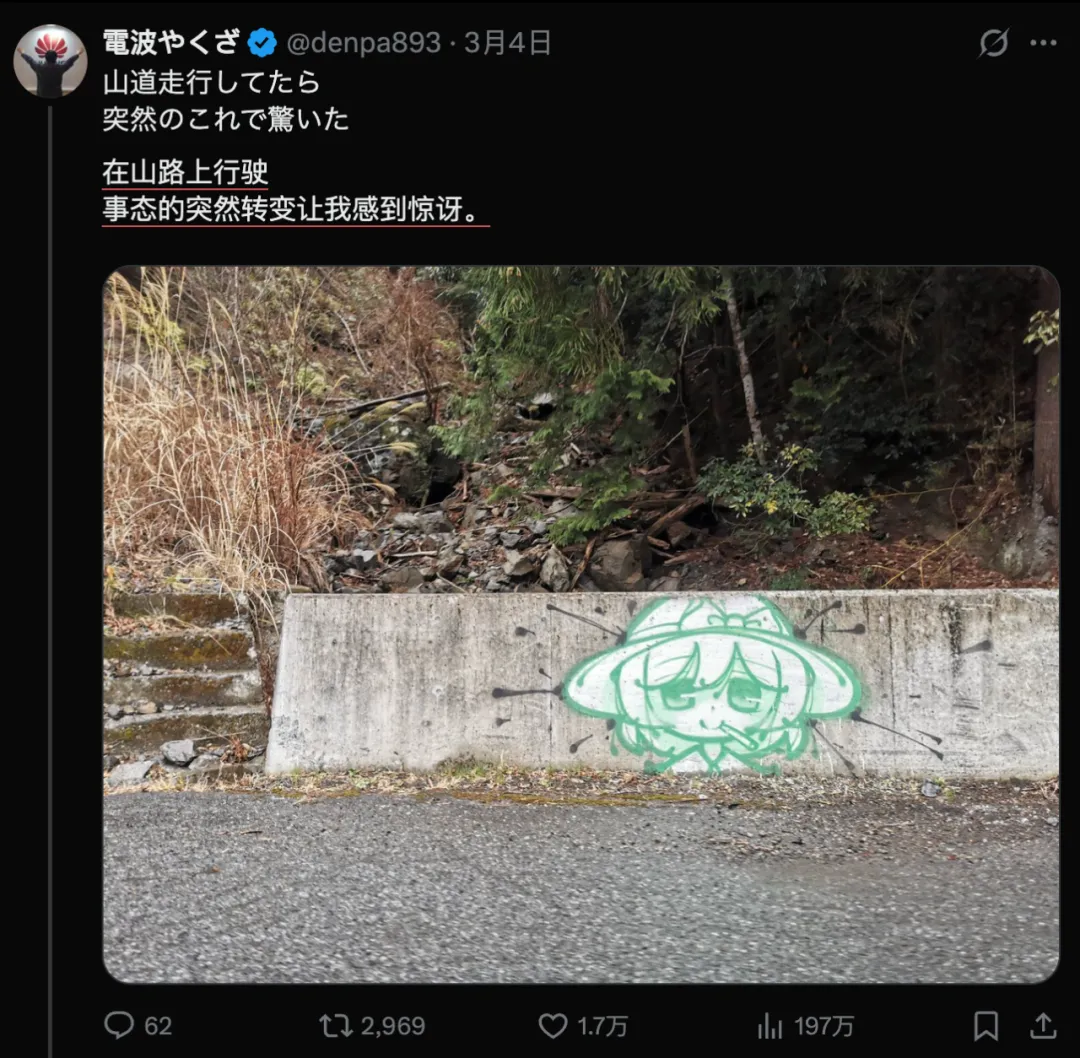 都市传说:有人在日本山路画了同一个角色,三个月过去,画手还没出现。