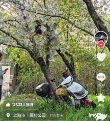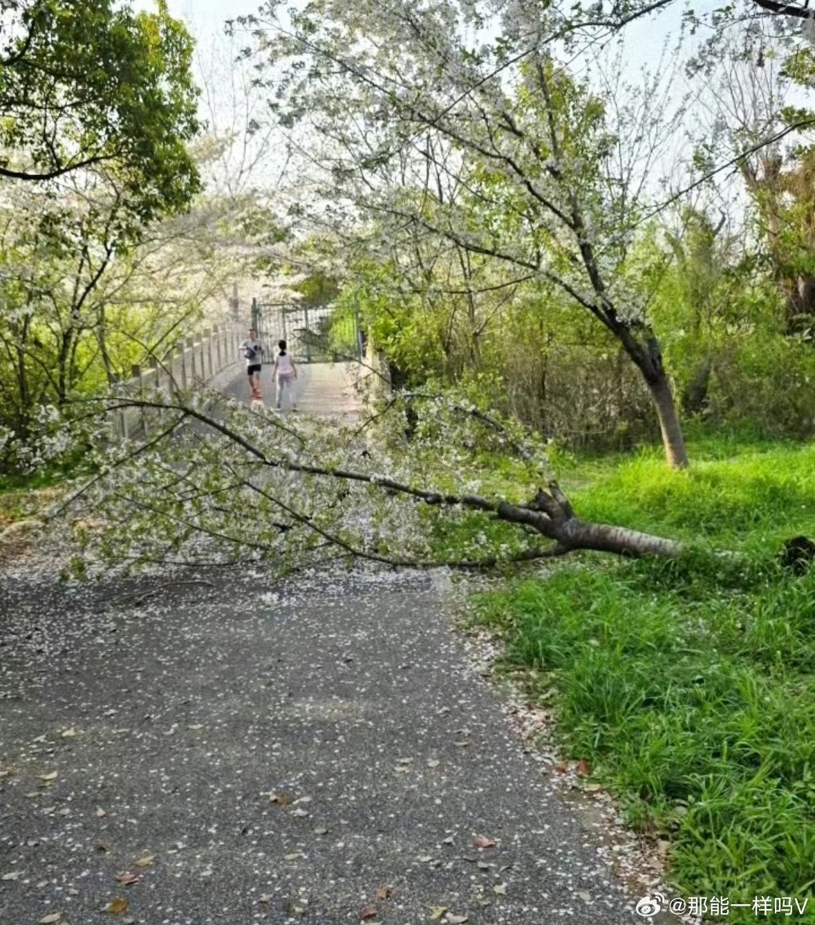 4月6日下午,上海寶山區顧村公園外環林帶發生一起不文明遊園事件,一名女子爲拍攝櫻花照攀爬樹幹,致使一棵樹齡超20年的櫻花樹不堪重負、連根倒伏,樹木根系斷裂,存活難度較大。