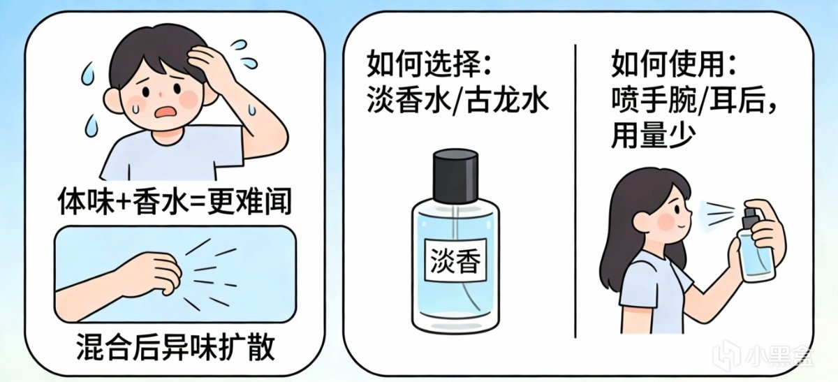 香水是用在乾淨皮膚上的,不是用來蓋體味的。香水和汗味混合,那個味道能把人送走。