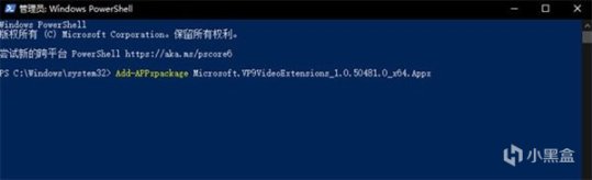 输入Add-APPxpackage Microsoft.VP9VideoExtensions_1.0.50481.0_x64.Appx