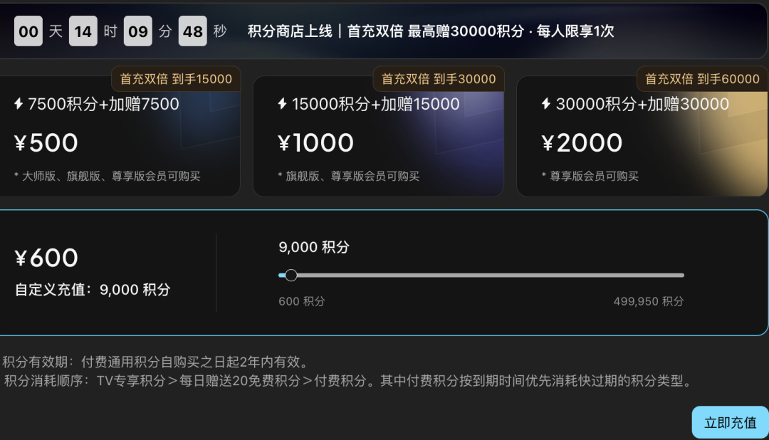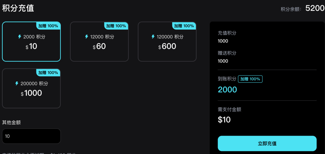 套餐的話45美刀買 6000 積分,好處是積分不會過期。