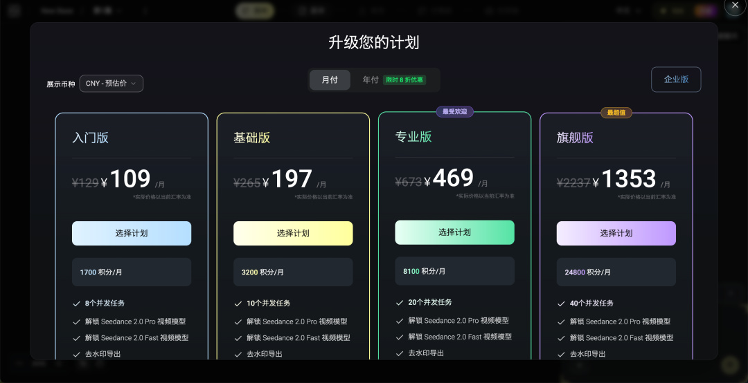 然後各大視頻工具也都更新了這個模型,價格也參差不齊。
