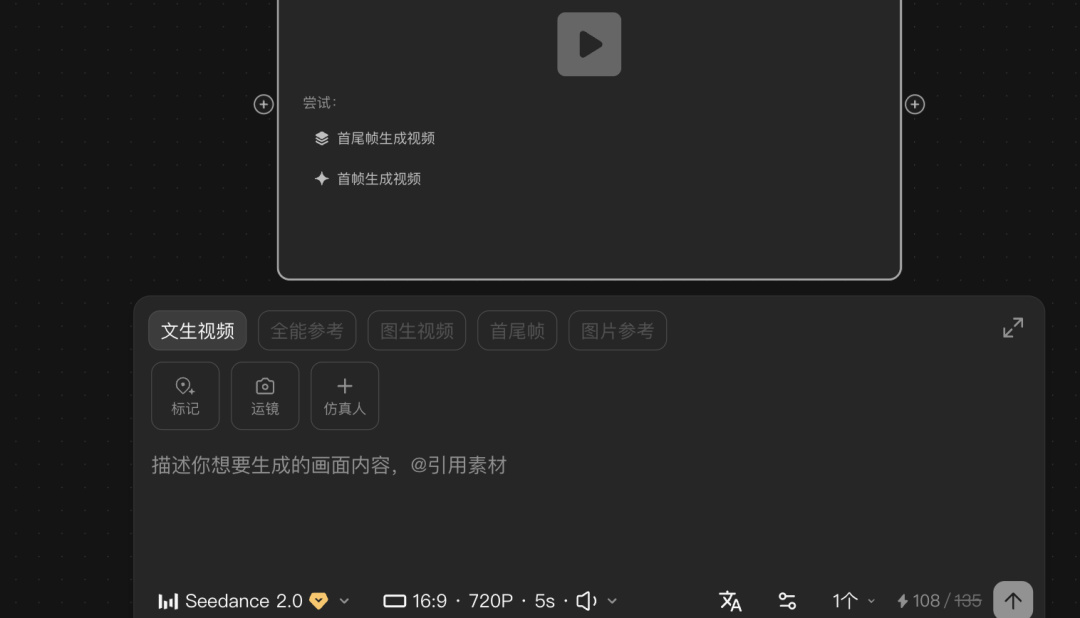 Seedance2.0 最高配置消耗是 5秒/108 積分