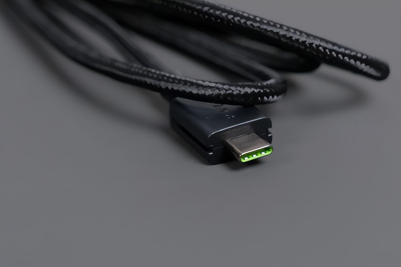 鍵線分離的設計,接口內部是雷蛇的標誌性綠色,在Type-C口的插頭兩側有凹槽與鍵盤進行吻合,這樣提升了盲插的成功率,也能夠更好的對插頭進行限位,保證穩定。