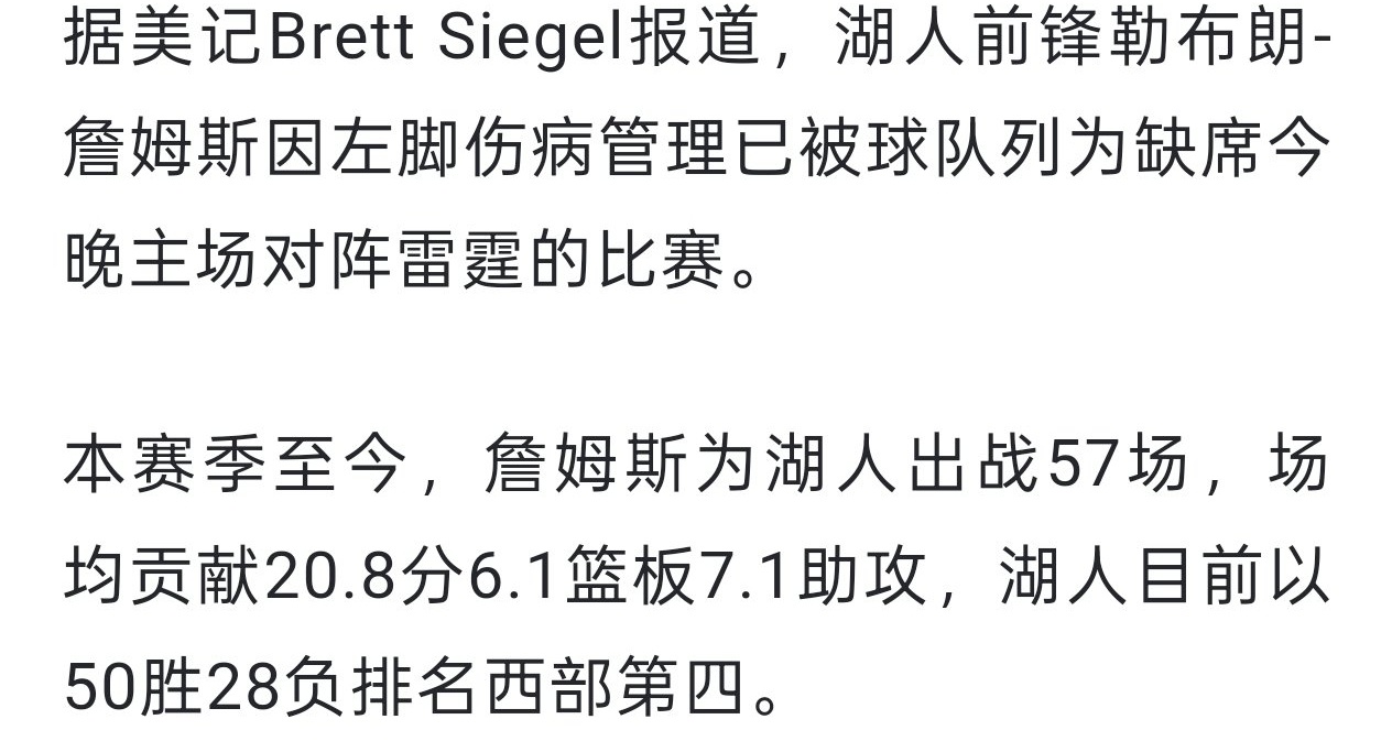 还有小黑子猜错了,这次老詹不是腹股沟智能伤病,而是左脚