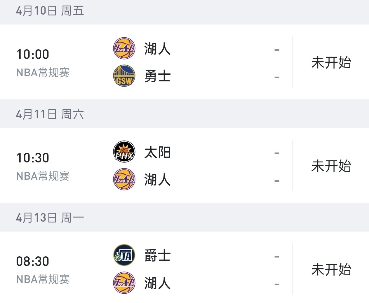 湖人后续赛程