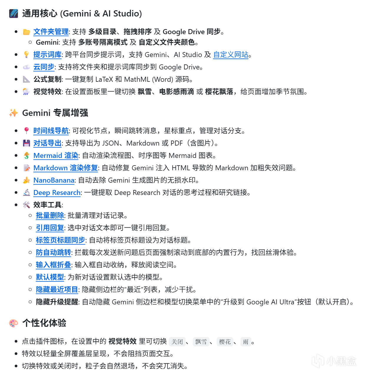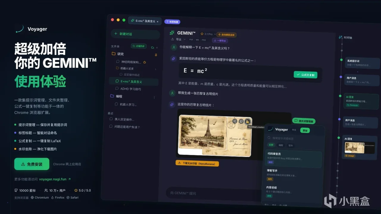 除了核心的導航和管理功能,Gemini Voyager 還內置多個實用小工具,覆蓋AI使用全場景: