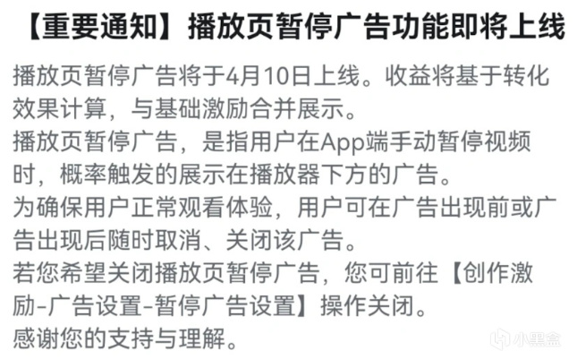 4月10日,嗶哩嗶哩正式上線【播放頁暫停廣告】。
