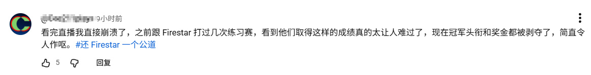 然后整件事最诡异的地方来了,根据在现场的油管博主,同时也是Firestar73朋友Shmeaty的爆料,此次判罚并非源于任何一位在现场或者不在现场的裁判。甚至当这个结果被宣布时,现场没有任何人对这个结果满意,这从头到尾都是主办方的意见。