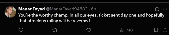至于原因?自然不是他比赛过程中有违规,而是因为他在获胜后的庆祝动作过于“粗鲁”,没有“体育精神”所以冠军就没有了,给对方了。