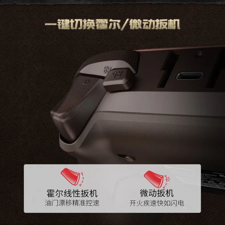 支持一鍵切換霍爾/微動扳機,兼顧精準控速與疾速響應,適配遊戲中不同場景的操控需求。