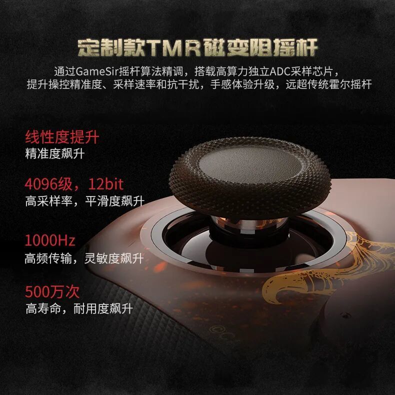 這款聯名手柄以精英級性能基準,通過GameSir獨有的搖桿算法精調,搭載高算力獨立ADC採樣芯片,顯著提升了操控精準度、採樣速率和抗干擾能力,操控體驗全面升級。