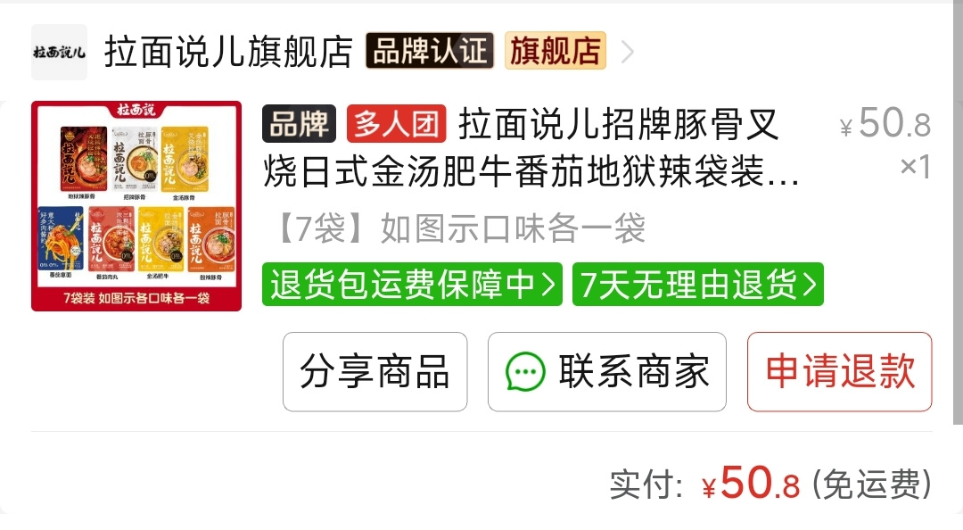 之前粉絲羣裏有人問有沒有好喫的泡麪,我推薦的這個,料比較足,麪條口感也很好,不過這個不能泡,需要水煮哦,會比泡麪麻煩。羣裏有人分享了個三人成團的鏈接,比單獨買划算,但是一人只能限購一次,而且需要3個人拼。