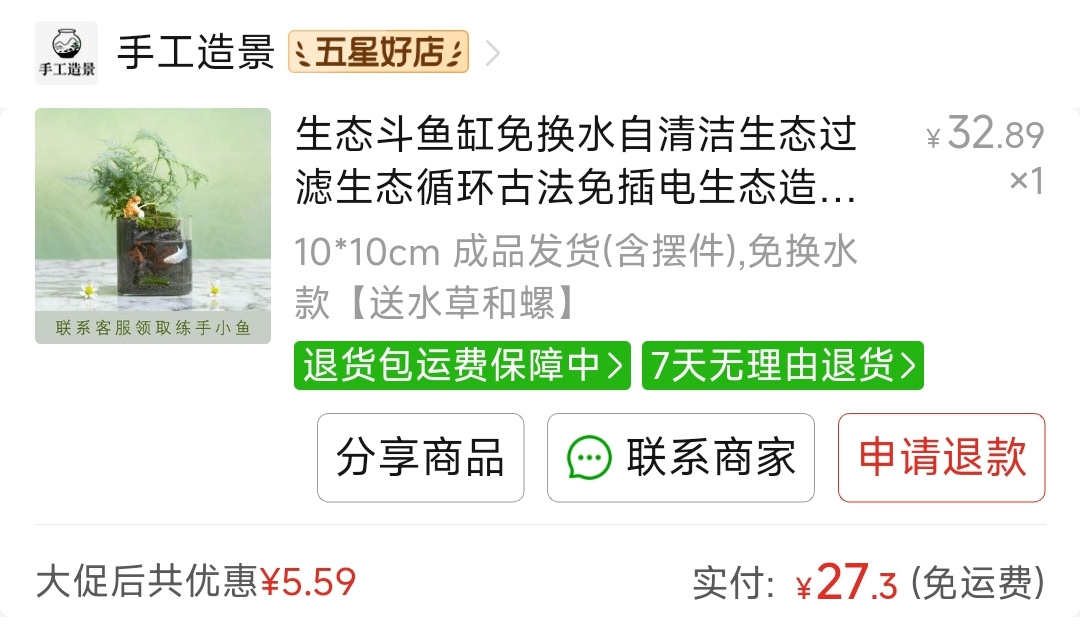 賣家說只用加水就好,不用換水,不知道是不是智商稅哈,我看挺好看的,買來試試,送了3只蘋果螺和一條魚,小魚它看着還挺活潑的,感興趣的可以評論區留言,我過段時間再給你們反饋。