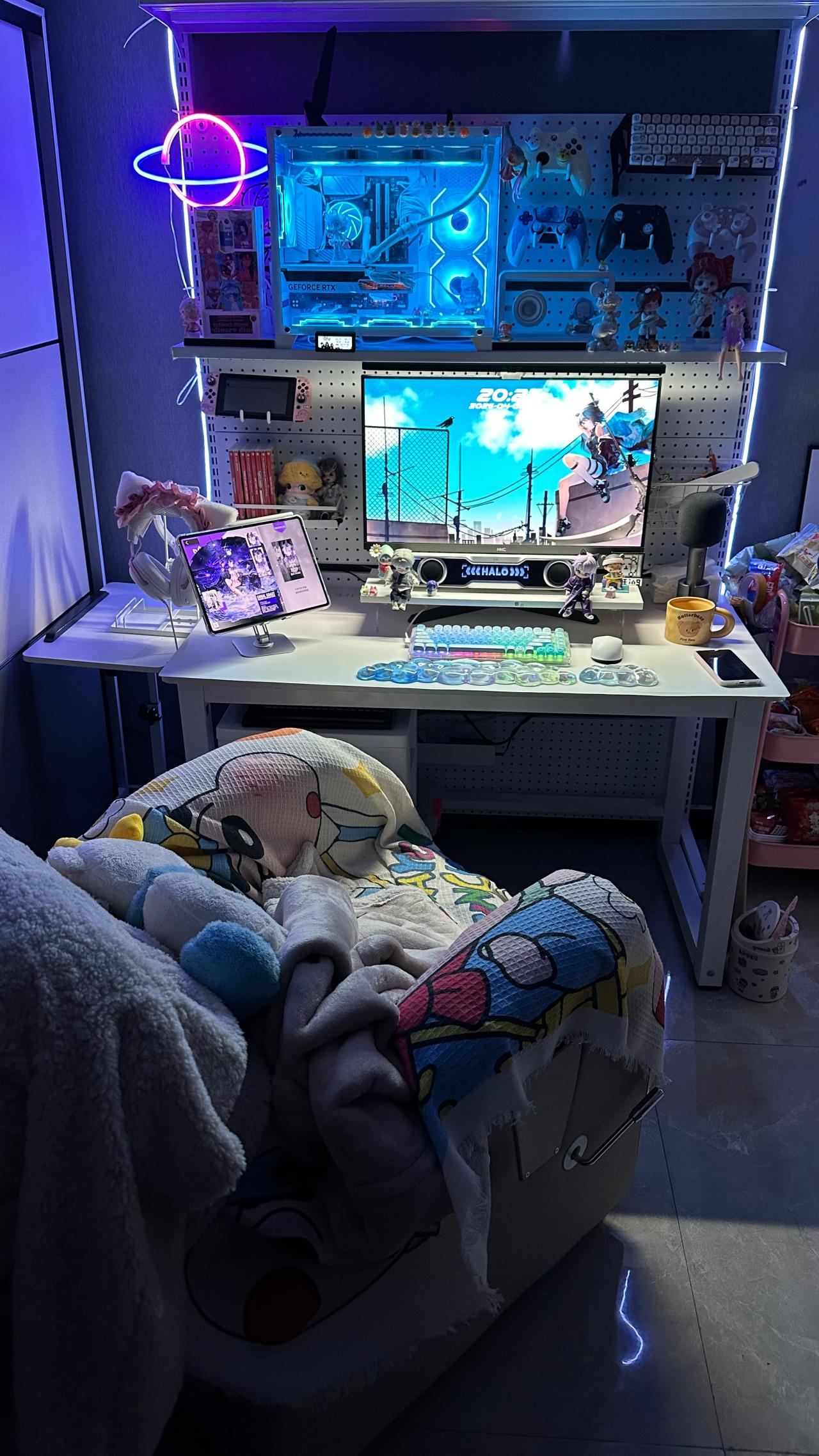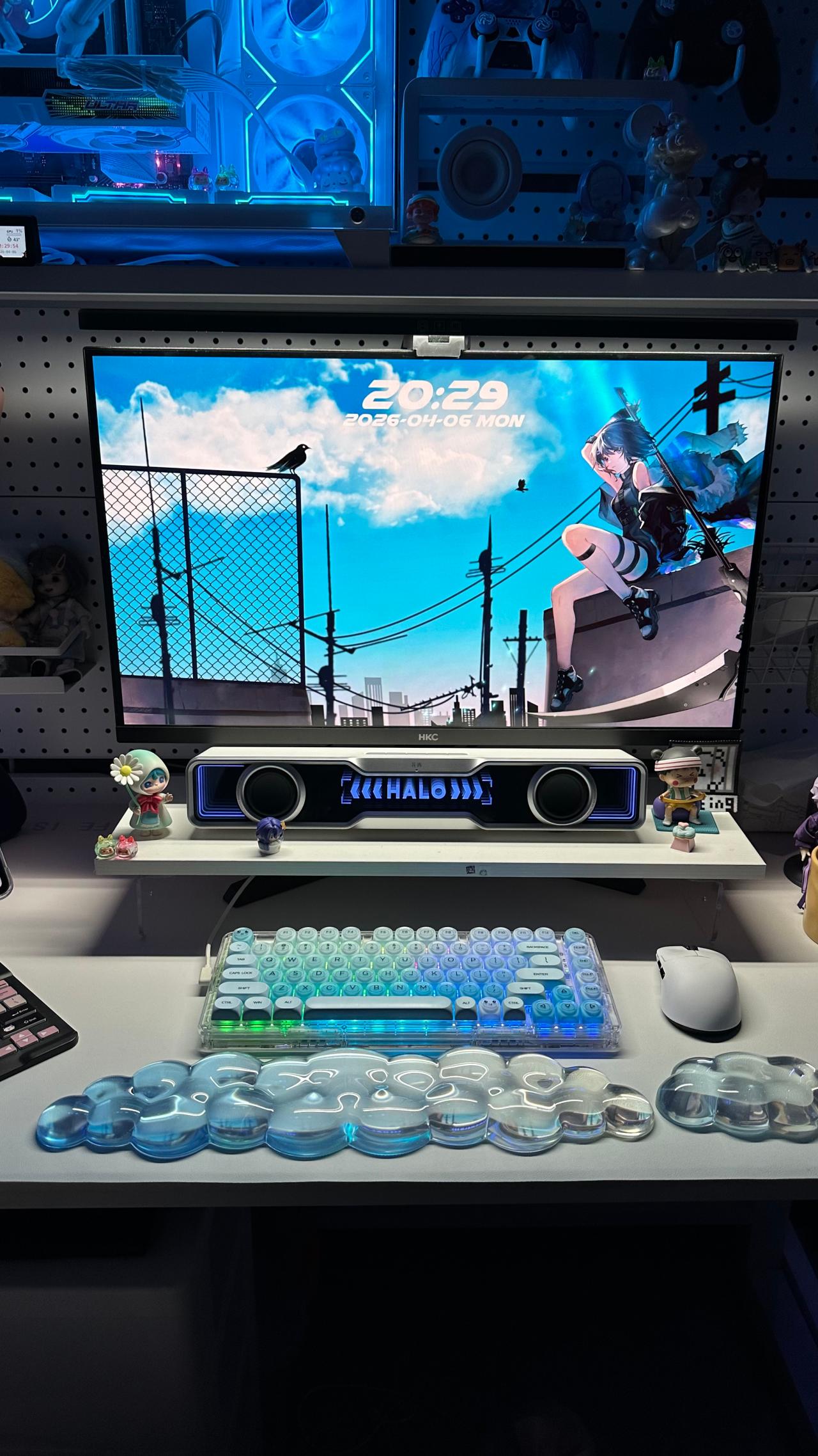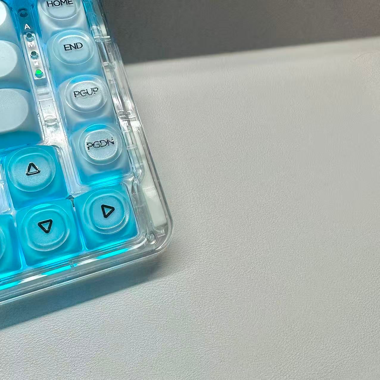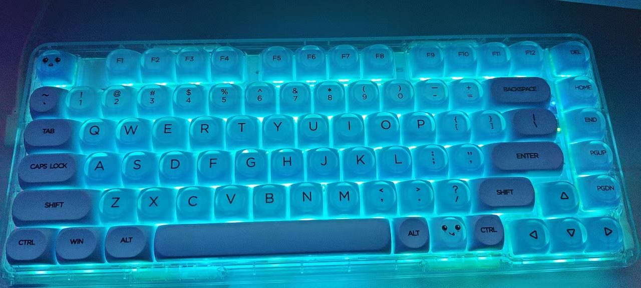 開燈關燈都很好看,是那種朦朧的透光,顏色也是我最喜歡的藍色,打字手感我也很喜歡,總之就是喜歡!