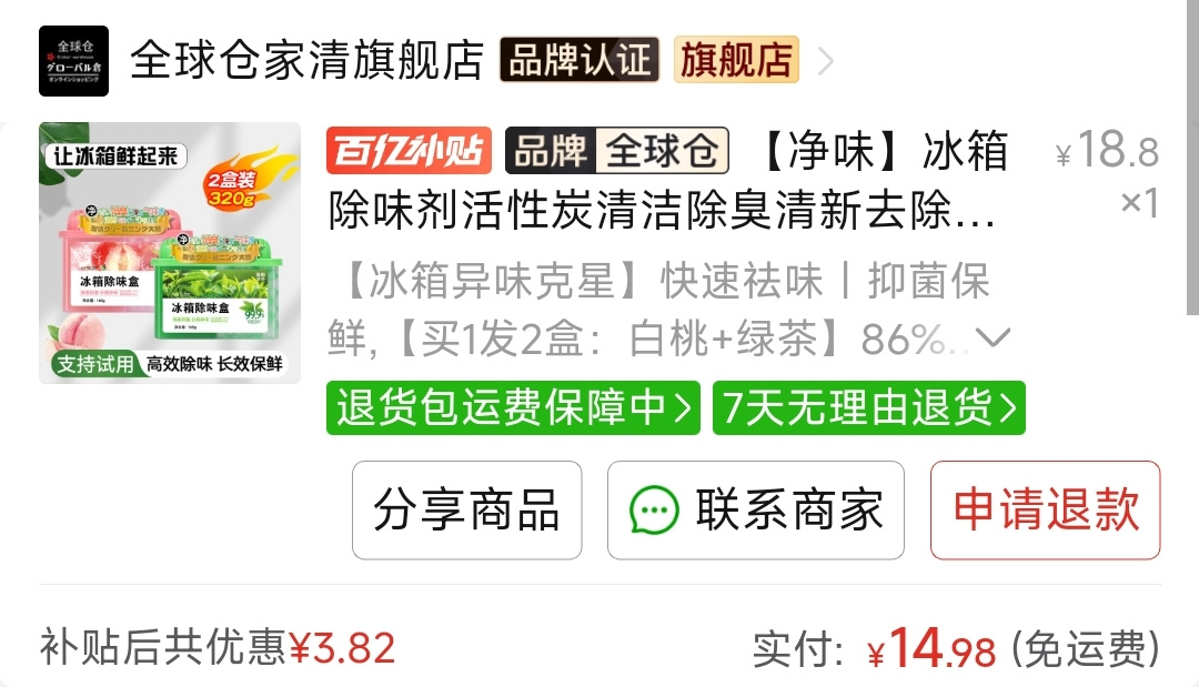 其實我冰箱裏只有飲料和雞蛋,沒啥味,但是我想打開的時候聞到水蜜桃的味道,所以買了