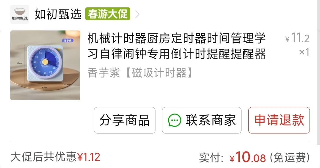 上次煮東西的時候忙別的忘記了,後面水差點燒乾了,給我鍋底都燒黑了一點,所以買了這個磁吸的貼冰箱上煮東西的時候可以有個提醒。