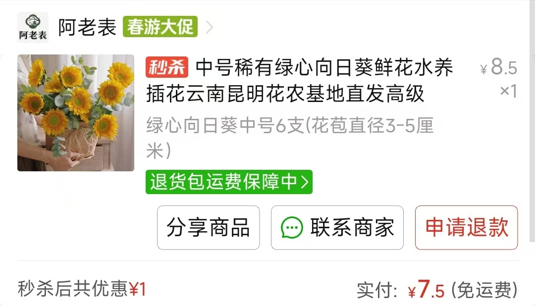 相當於1塊錢1朵,向日葵的花瓣摸着手感還挺好的,這個花期沒有風鈴久,也就養了一週就有點不太行了,不過向日葵真的很明媚啊,這段時間整天下雨的,看到花花心情好一點。