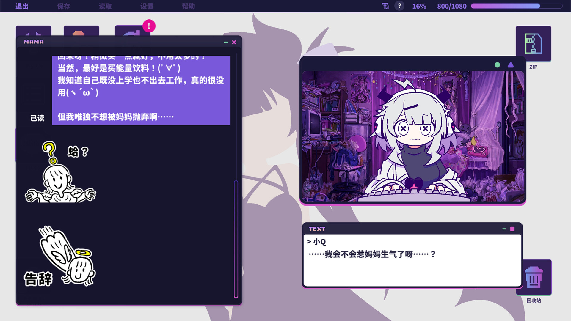 一款"音游×怪文书"题材的节奏冒险游戏,描绘了家里蹲少女伴随着"电波歌曲"在互联网上发布怪文书,让世界逐渐陷入晕晕狂潮的故事