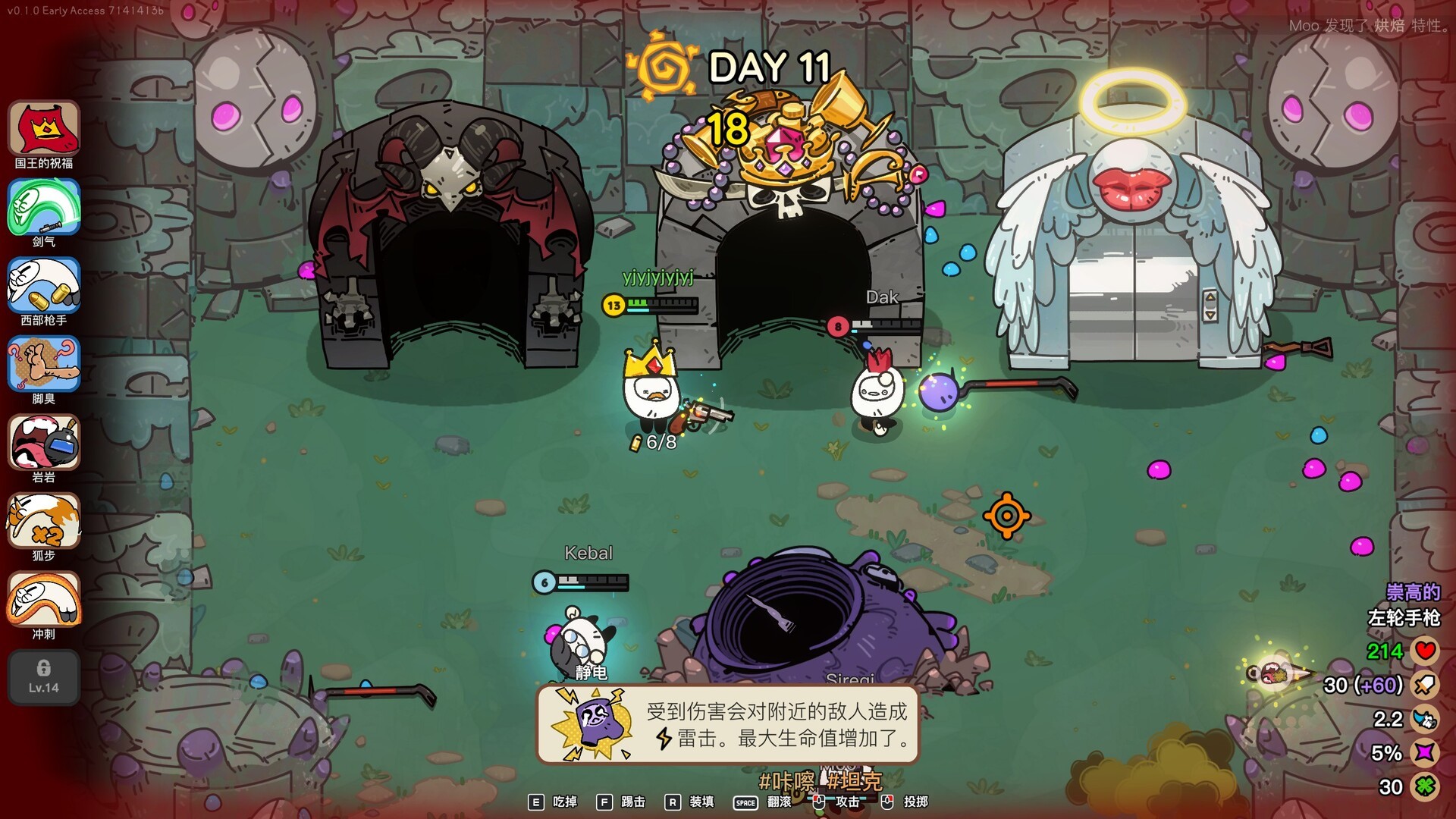 积累经验升级解锁新卡牌、进化武器并召唤幸存者触发连锁反应