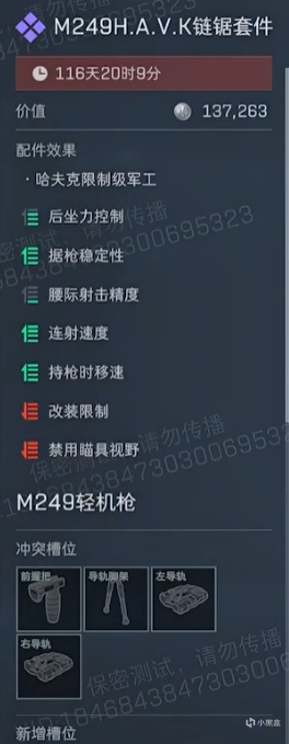 这个套件装备上后瞄准只能够进行腰射(战术据枪姿态)射速大幅度提升,相当于以后M249强行多了一个腰射玩法。