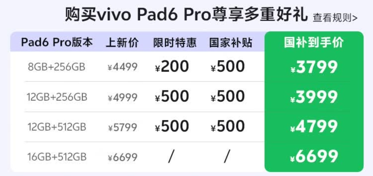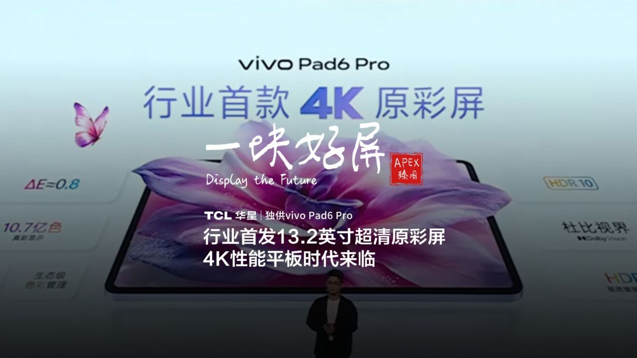 在3月30日晚的vivo x300s/Ultra手機發佈會上,vivo推出了全新的Pad6 Pro平板,首發4299(8+256版)起,國補優惠500,3799起,而其中最亮眼的非這塊4K 144Hz屏幕莫屬