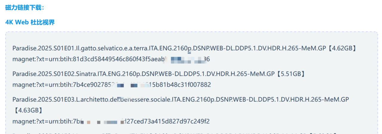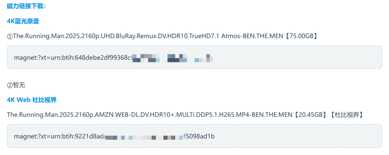 所以,杜比視界的用途一定是主服務於觀影場景,然而,更尷尬的窘境,是國內目前的視頻平臺並無正經4K HDR資源!雖然B站有很多杜比視界的短視頻,奈何碼率和編解碼器技術的缺陷,嚴重拖累了畫面的觀感,這也是現在愛奇藝、騰訊、優酷三家視頻平臺所共同面臨的問題。當用戶想觀看正兒八經的4K杜比HDR影片資源時,在不借助外網前提下,就只能通過迅雷、夸克等具備解析磁力/BT鏈接且可以轉存雲盤進行在線播放的軟件來實現.....