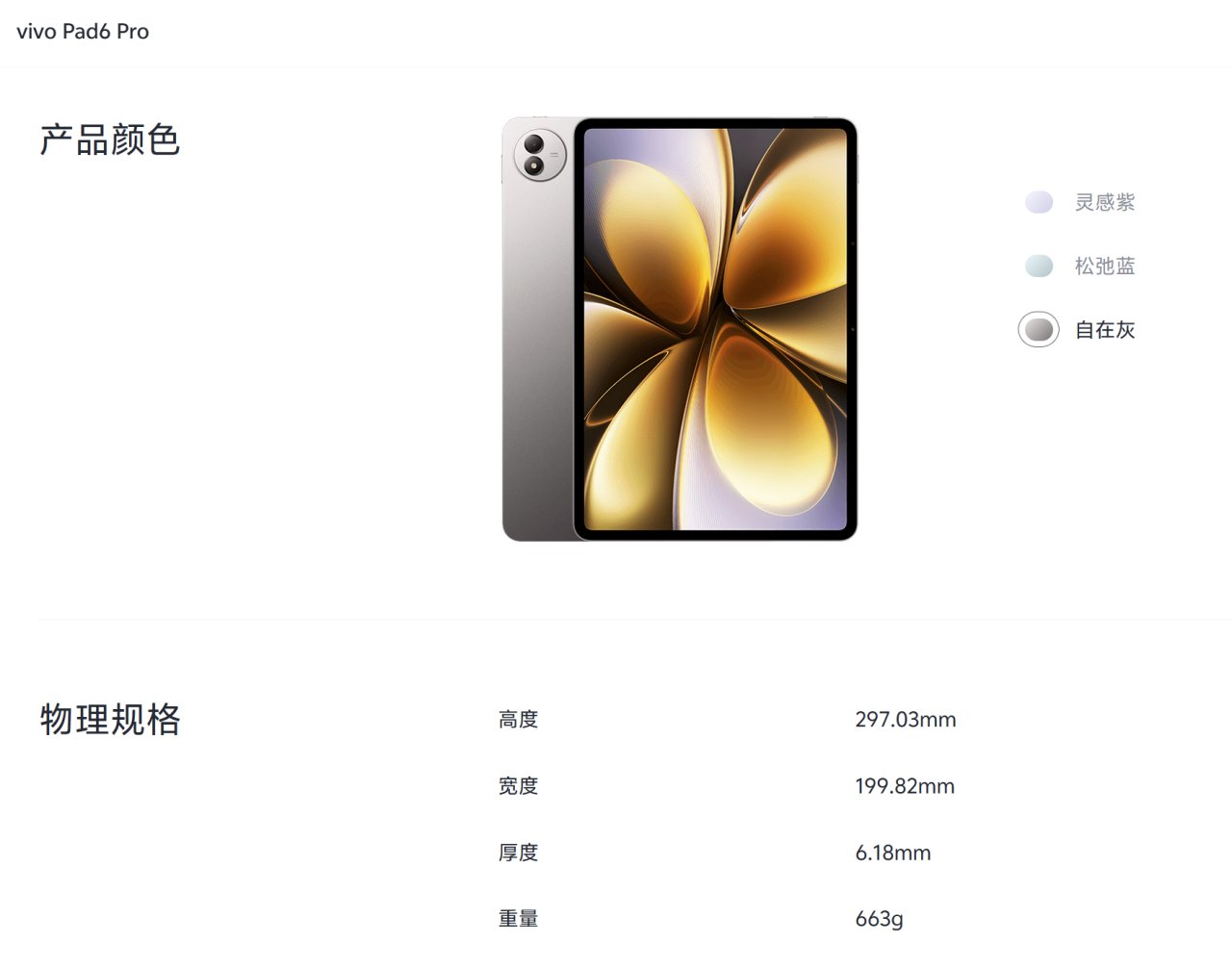 vivo Pad6 Pro的三維尺寸