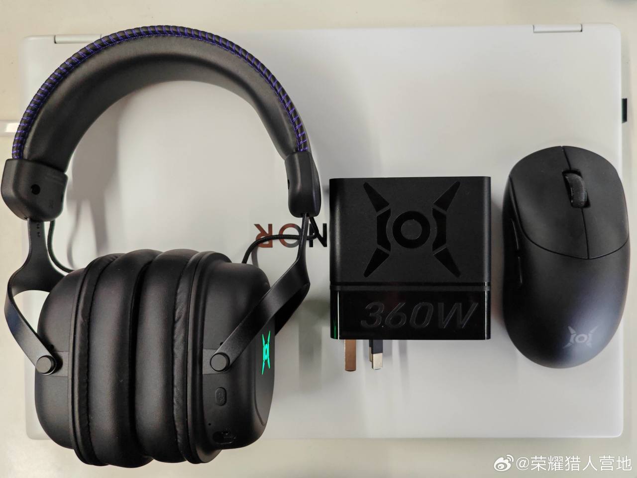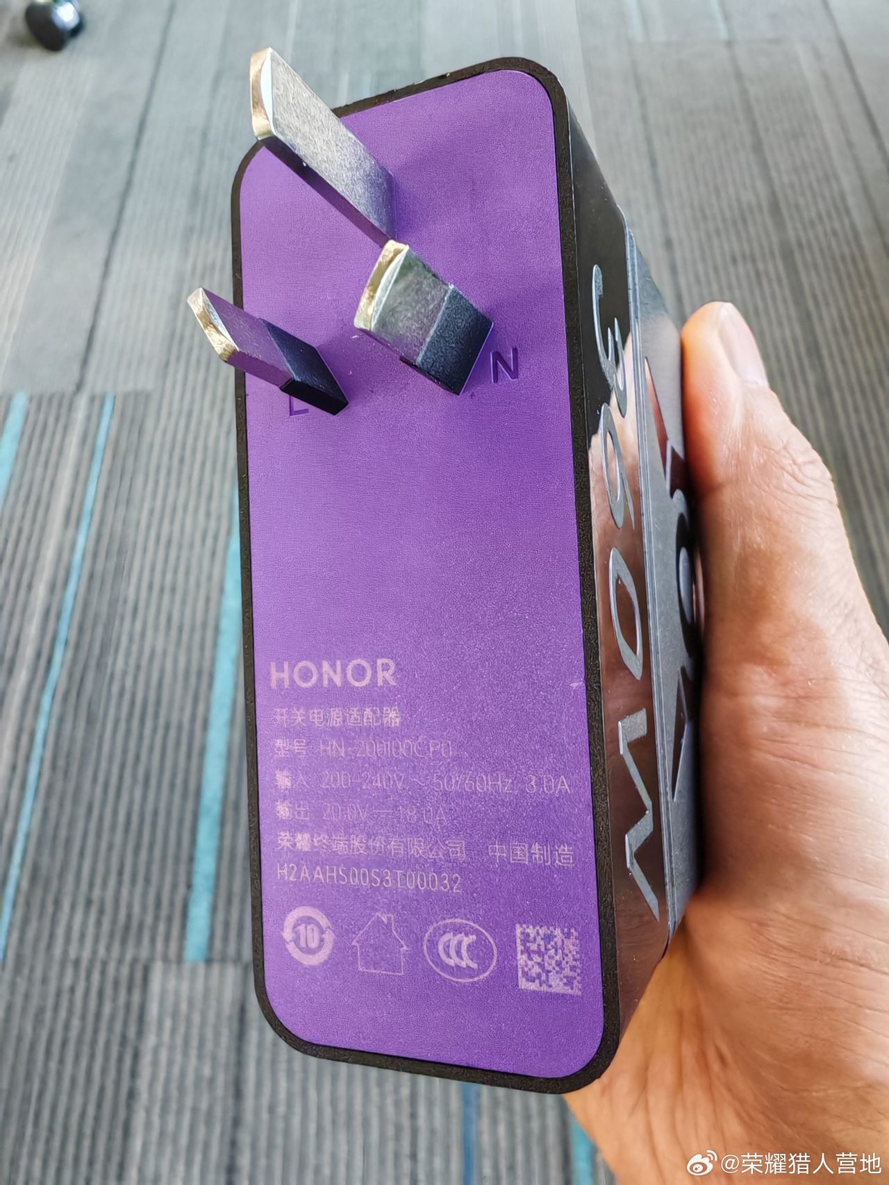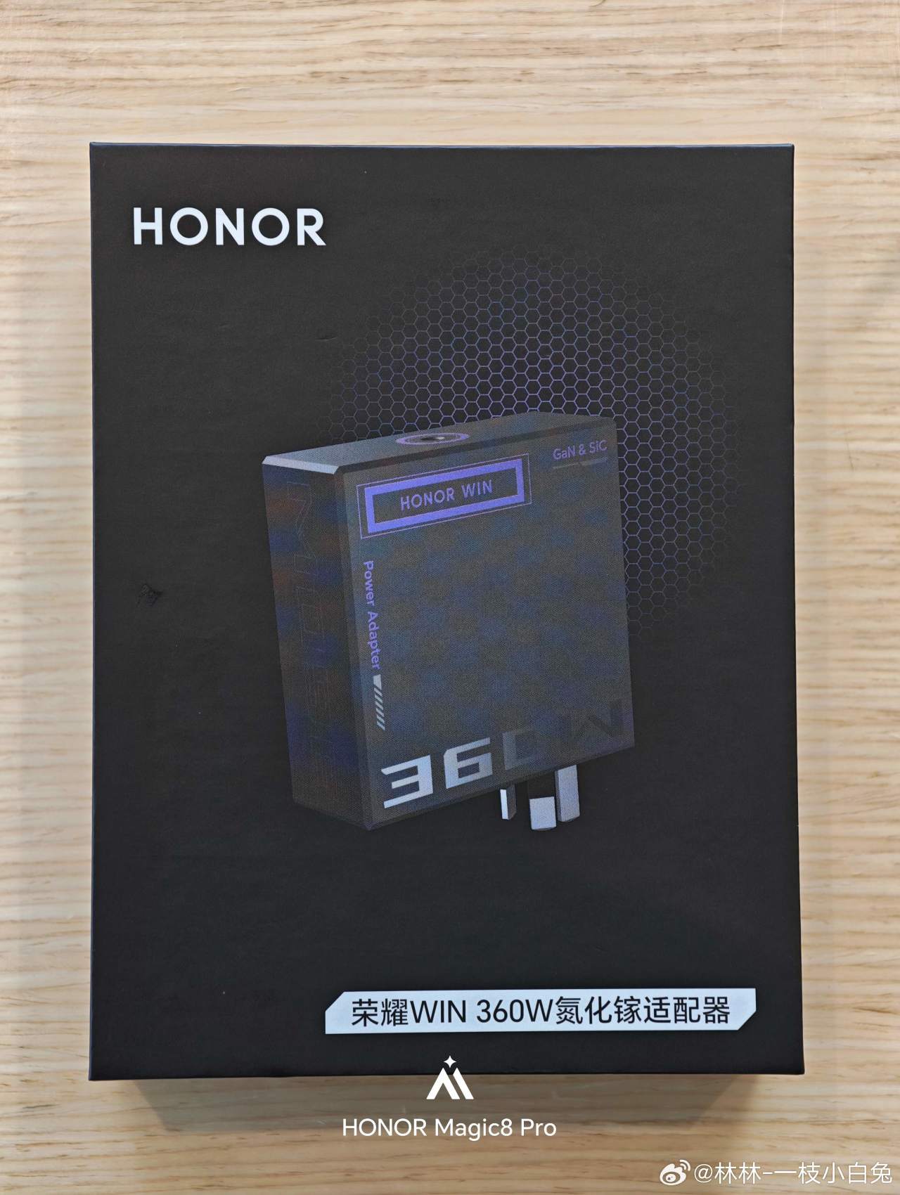 3月31日,微博“榮耀獵人營地”跟“林林–一枝小白兔”(現榮耀筆記本產品經理)曝光了一款榮耀即將發佈的便攜式360W氮化鎵筆記本充電頭,輸出規格爲20V 18A,三腳插設計,4530的DC口,支持轉接,重量約405g,預計會隨榮耀win遊戲本一起發佈。