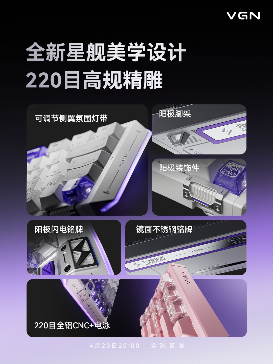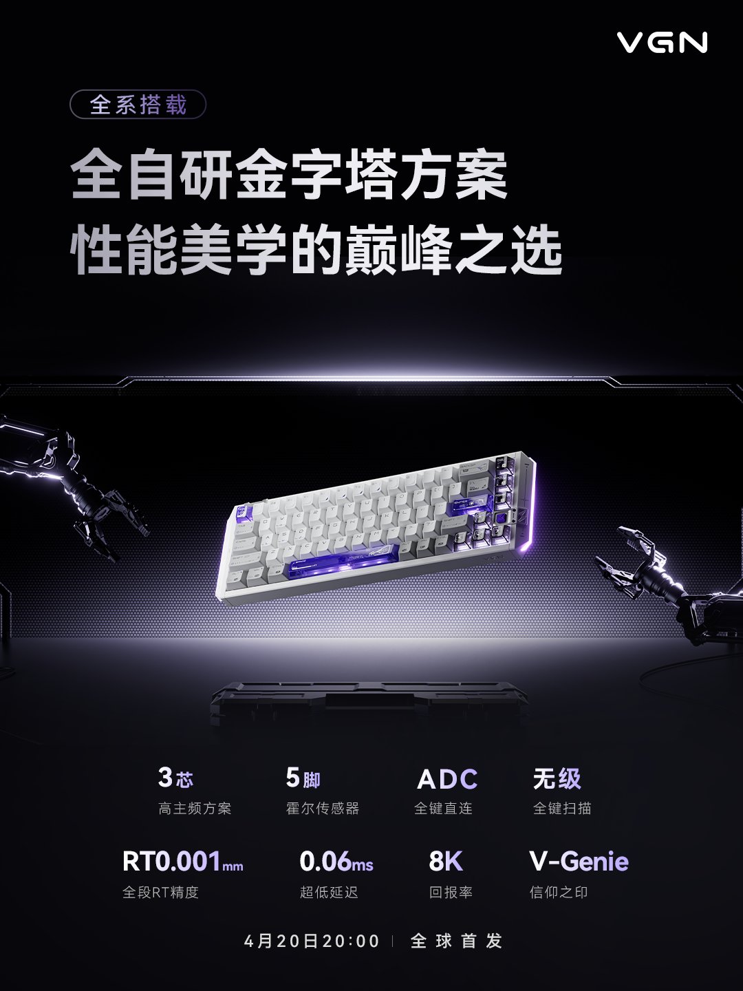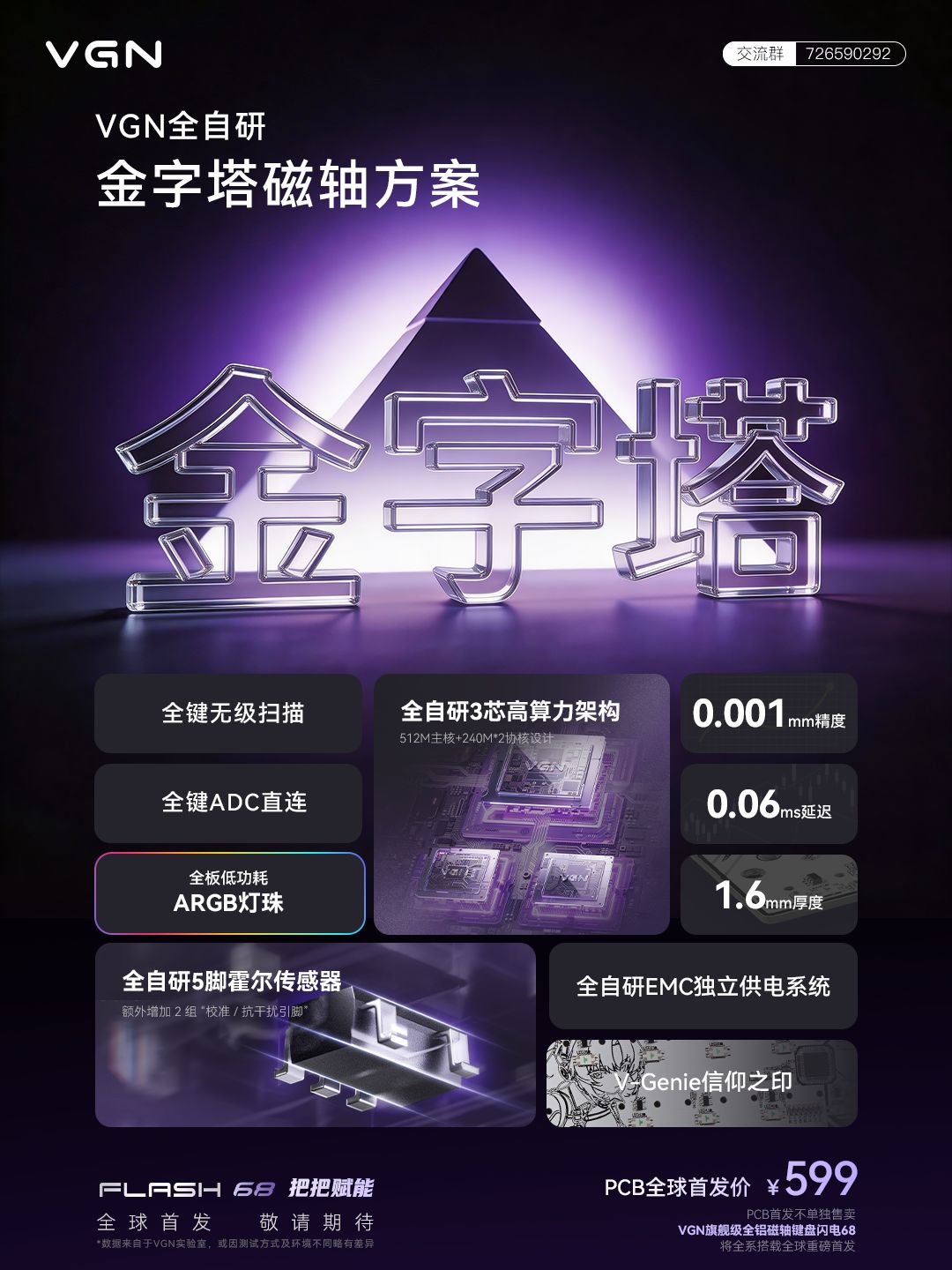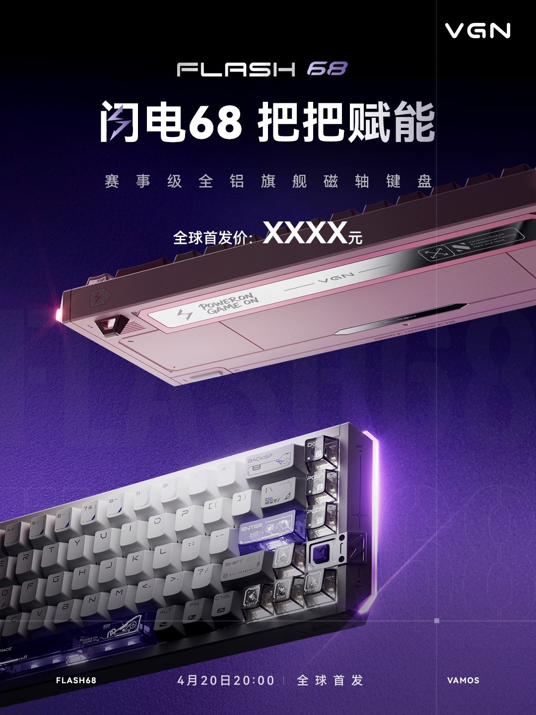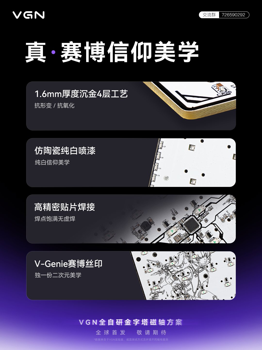 VGN將在4月20日晚8點推出搭載自研磁軸PCB板的閃電68全鋁磁軸鍵盤,首發價創新高,來到四位數其中,PCB板背面被紋上了二刺螈人物