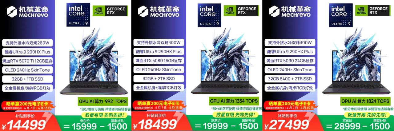 U9-290HX Plus+5070ti,32G(5600MHz)+1T,2560×1600P 240Hz OLED屏(水冷機單買),15999元,國補14499