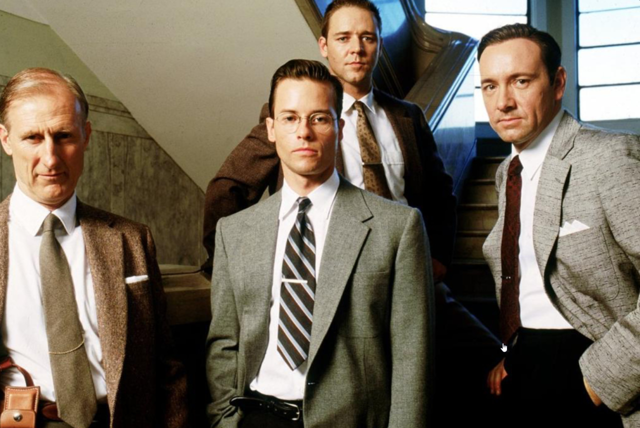 1997年经典警匪片,讲述洛杉矶警局三位性格迥异的侦探各施其法,揭露警局背后肮脏内幕的故事。杰克临终时说出的“罗罗·汤马西”成为揭开真相的关键线索,为了永远记住他,他编造了这个名字——就是为了罗罗·汤马西,他才当了警察。海报中三位男主角亦正亦邪,精彩华丽,从情节到细节都无可挑剔。