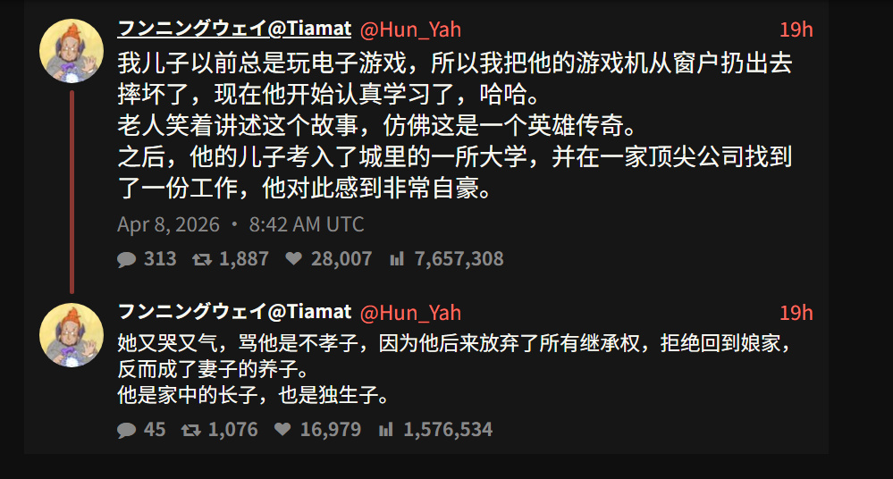 近日,一则关于“极端教育方式后果”的帖文引发海内外网友大规模讨论。一名日本父亲曾向人炫耀自己通过摔碎儿子游戏机的粗暴手段,成功逼迫孩子考上名校并进入一流企业,然而事件的最终走向却令舆论哗然:其独生子在独立后选择放弃全额财产继承权,并入赘妻子家庭,与生父彻底断绝往来。